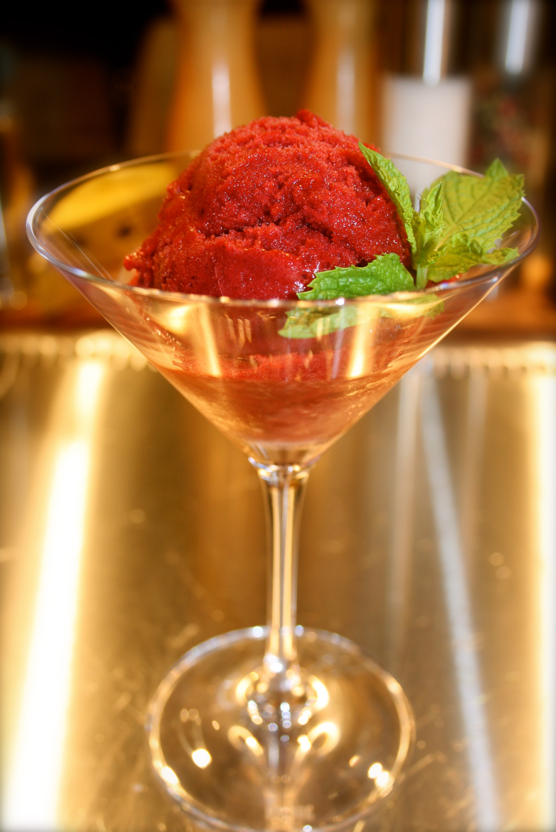 Make a simple syrup by combining the sugar and water in a small saucepan. Bring it to a boil and stir until the sugar is completely dissolved. Shut off the heat and let it cool down. Place in the refrigerator until it completely chilled. I usually make my simple syrup the day before I make the sorbet – then I know it’s nice and cold. If it’s not, your sorbet won’t work.