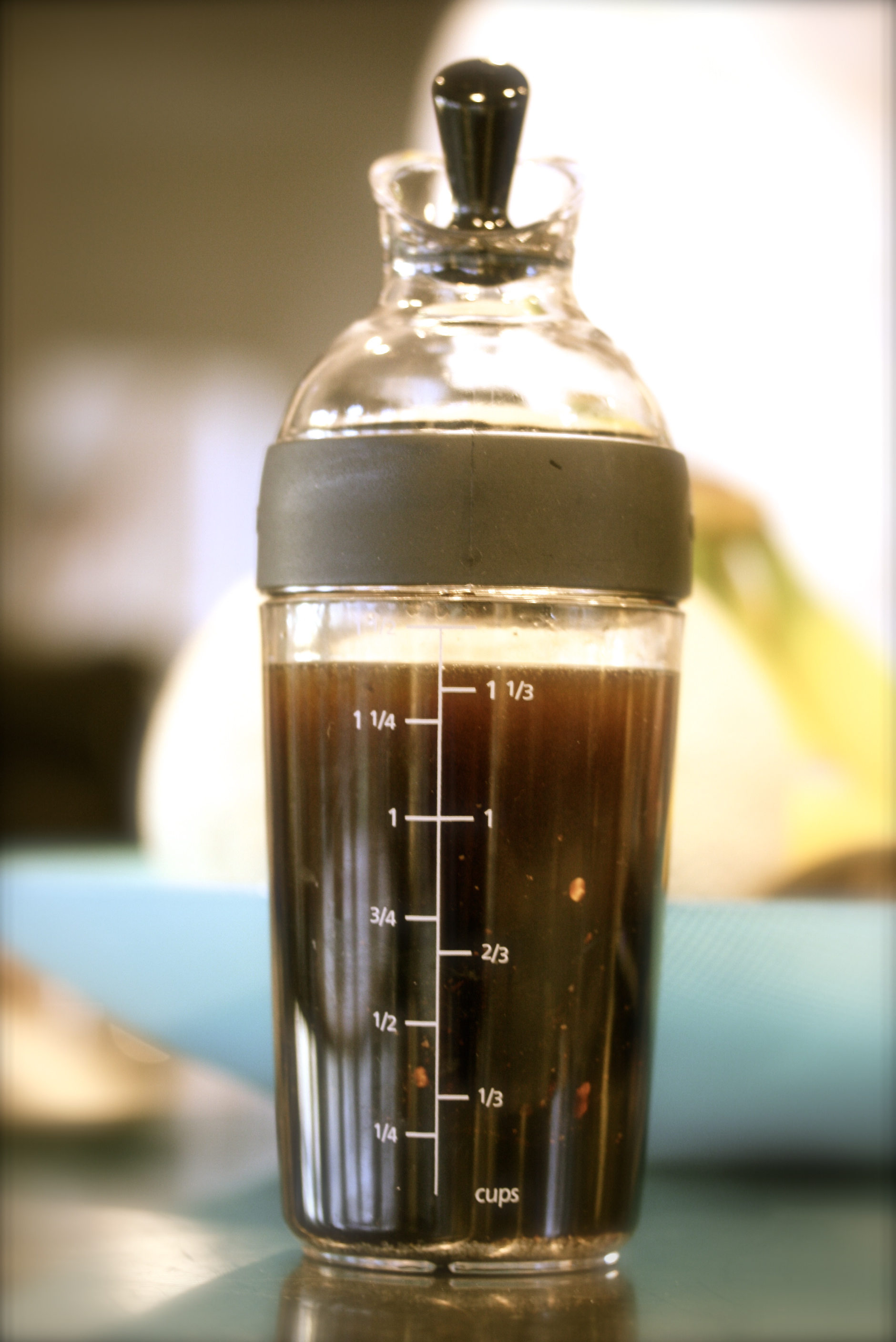 I always make homemade salad dressing. Have you ever looked at the ingredients list on the bottled dressing at the grocery store? Homemade dressing takes no time to make. With this handy salad shaker, I made a big batch of my balsamic vinaigrette to keep in the refrigerator. It’s only a few ingredients: balsamic vinegar, good quality olive oil, garlic, honey, kosher salt & pepper – no chemicals or fillers needed.