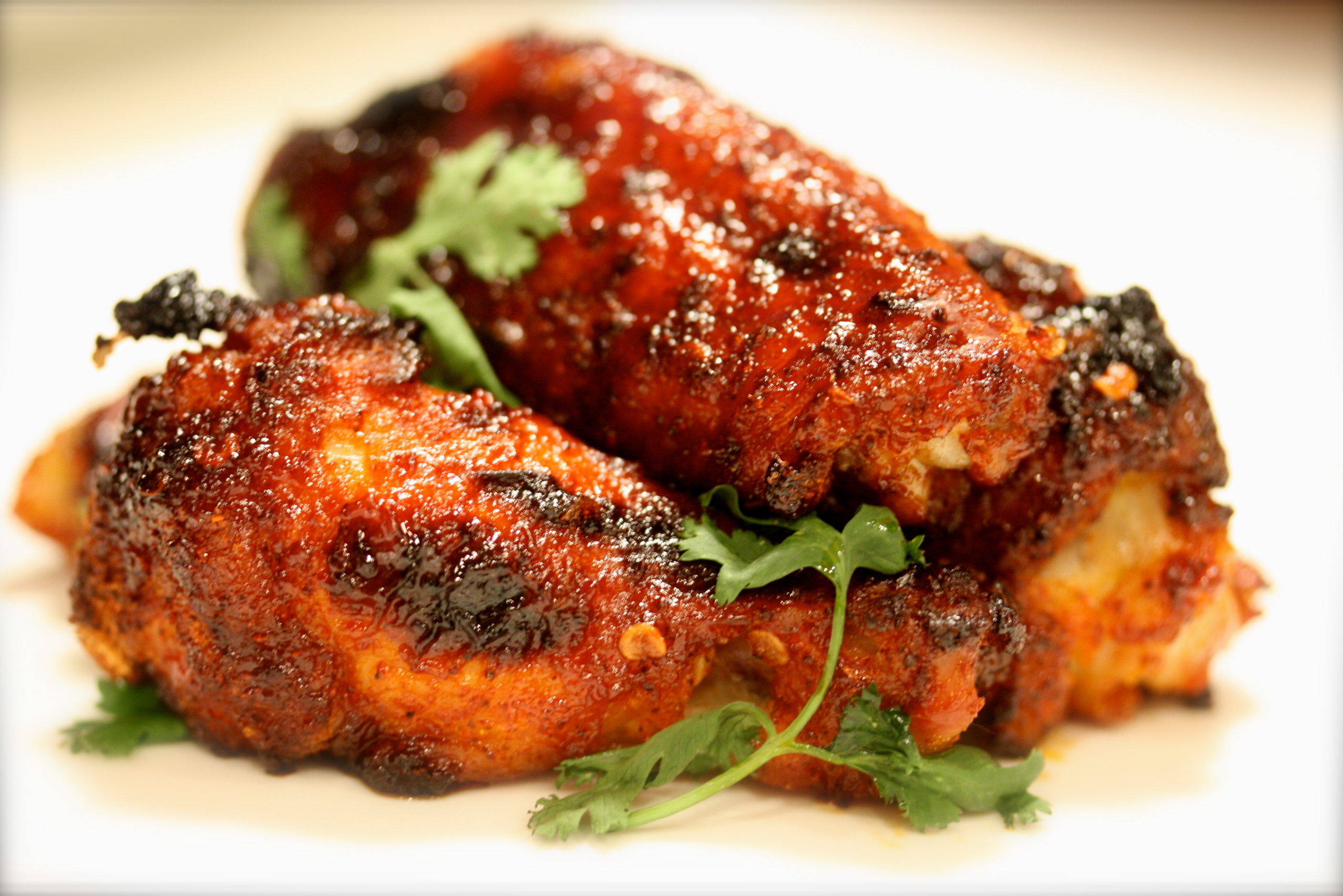 This recipe called for the wings to be grilled, but because the article convinced me I could make the best oven-baked wings following their steps, and it was raining, I opted for the oven method. The result was sticky, smoky, spicy goodness.