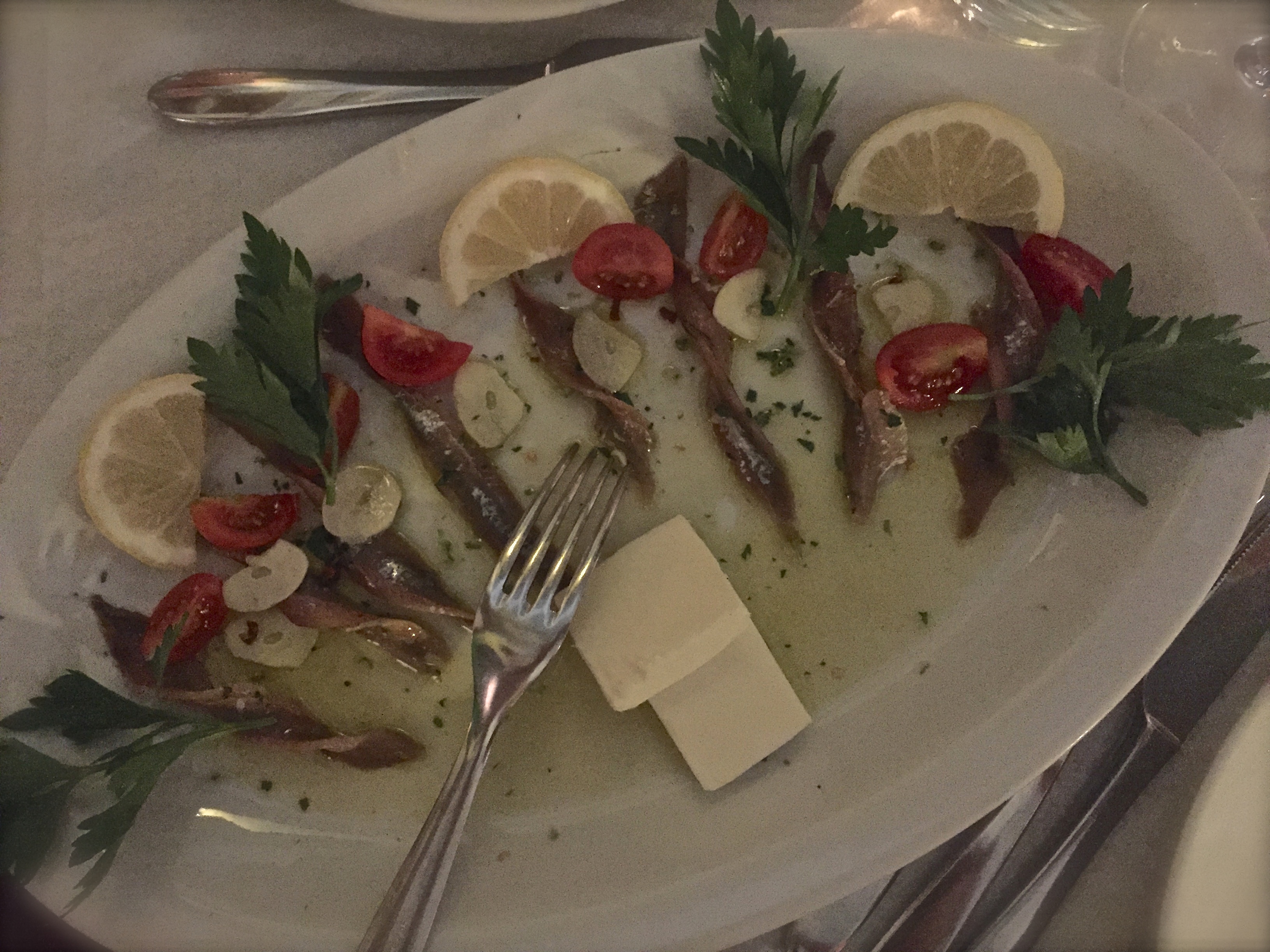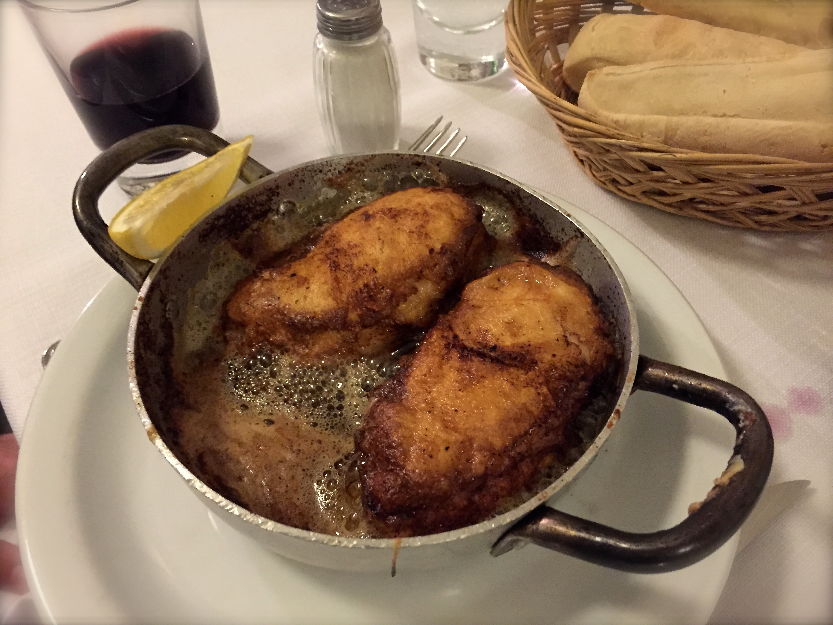 Have you ever been to a restaurant where they just try too hard? Everything looks so fancy schmancy with artistic schmears of sauces? Wouldn’t it be awful after all that effort if the food wasn’t good? Lucky for La Terrazza the food was yummy, because they certainly put a lot of effort into getting their food onto the plate. Look at my fish! I should also mention that the restaurant is located in a building with a gas station. See the parking lot below, definitely an odd location.