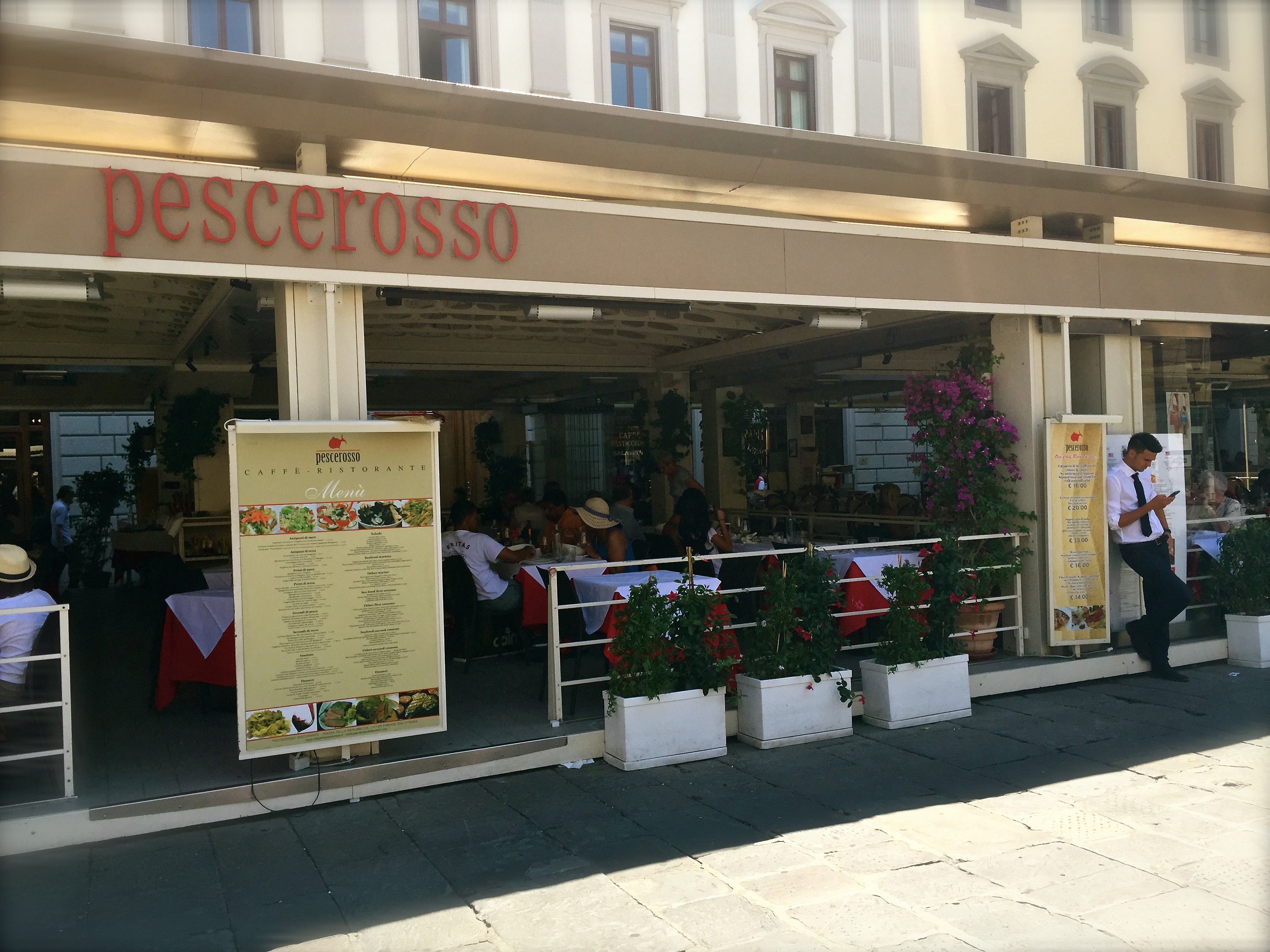 We had a nice lunch on a very hot afternoon at PesceRosso. Located in one of the busiest areas of the city, each side of the piazza is lined with restaurants vying for your business… it can be a little off-putting. We enjoyed cold crisp salads and steamed mussels.