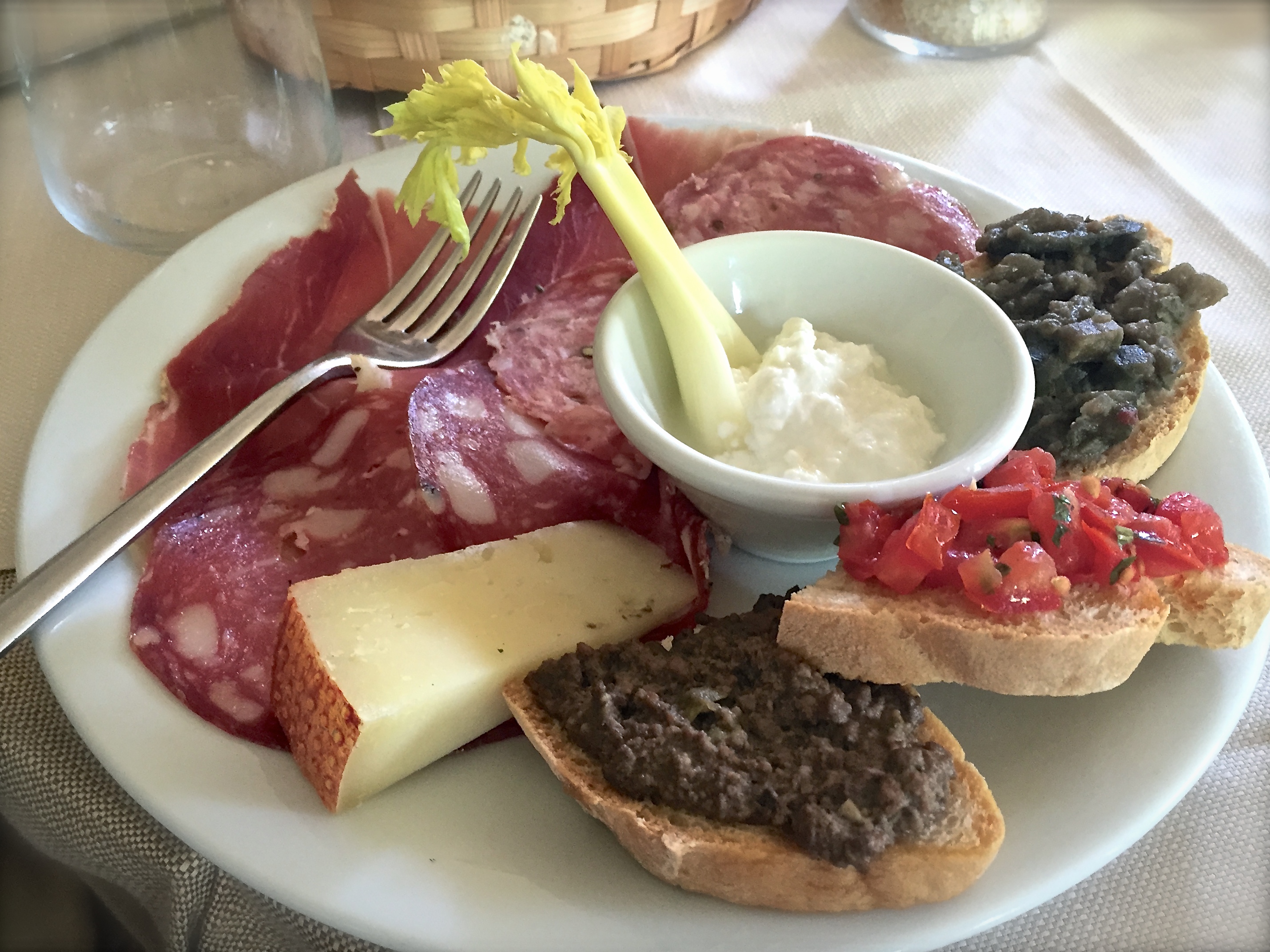 Our first meal out during our week in Montaione. Beer, antipasto and pizza. Yum!