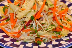 Combine the vinegar, lime juice, canola oil and sugar in a bowl and whisk together. Place the remaining ingredients in a large bowl and pour over the dressing. Season with salt and pepper to taste. Serve with the pulled pork tacos. I think this is best when you let it sit for a while before serving. Make it when the pork goes into the oven and then place it in the refrigerator until it’s time to serve.
